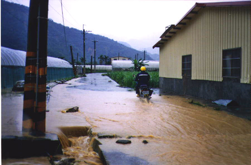| 蜈蚣社區旁乾溪的混濁溪水。 | ||